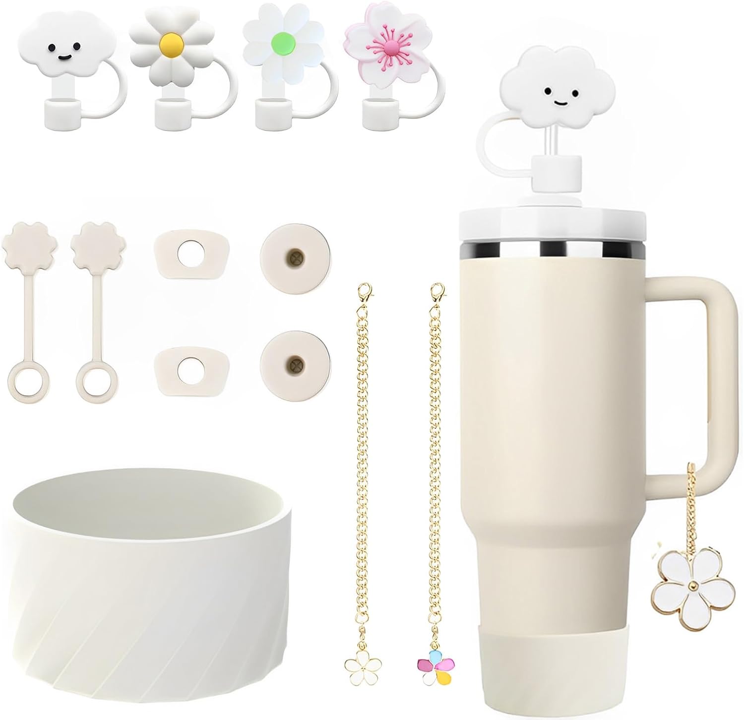 13 Stück Stanley Cup Zubehör, Accessories Enthält 6 Auslaufschutz, 4 Strohhalm Abdeckung, 2 Anhänger Zubehör, 1 Silikonhülle Stanley Cup Accessories, für 1,2l und 850 ml Accessories(Off White)