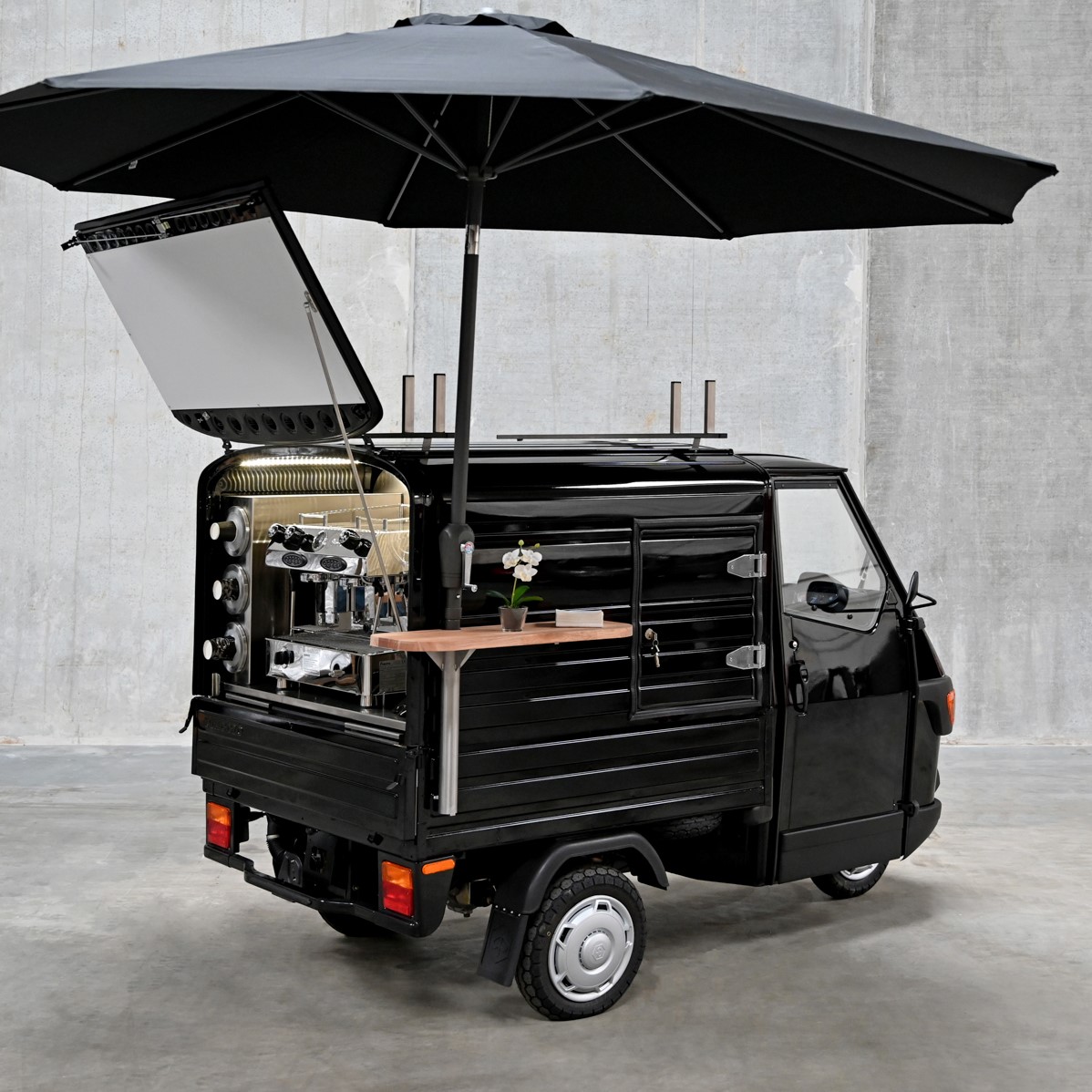 Ob für Festivals, Märkte oder Firmenevents – der Ape 50 Kaffeewagen: bietet eine stilvolle und voll ausgestattete Lösung für den mobilen Kaffeegenuss. Anpassungen an Ihre individuellen Bedürfnisse sind selbstverständlich möglich!