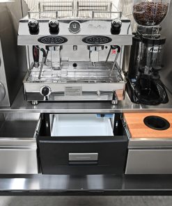 Der Wagen ist mit einer hochwertigen Fracino Espressomaschine und einer Kaffeemühle ausgestattet und bietet zudem: