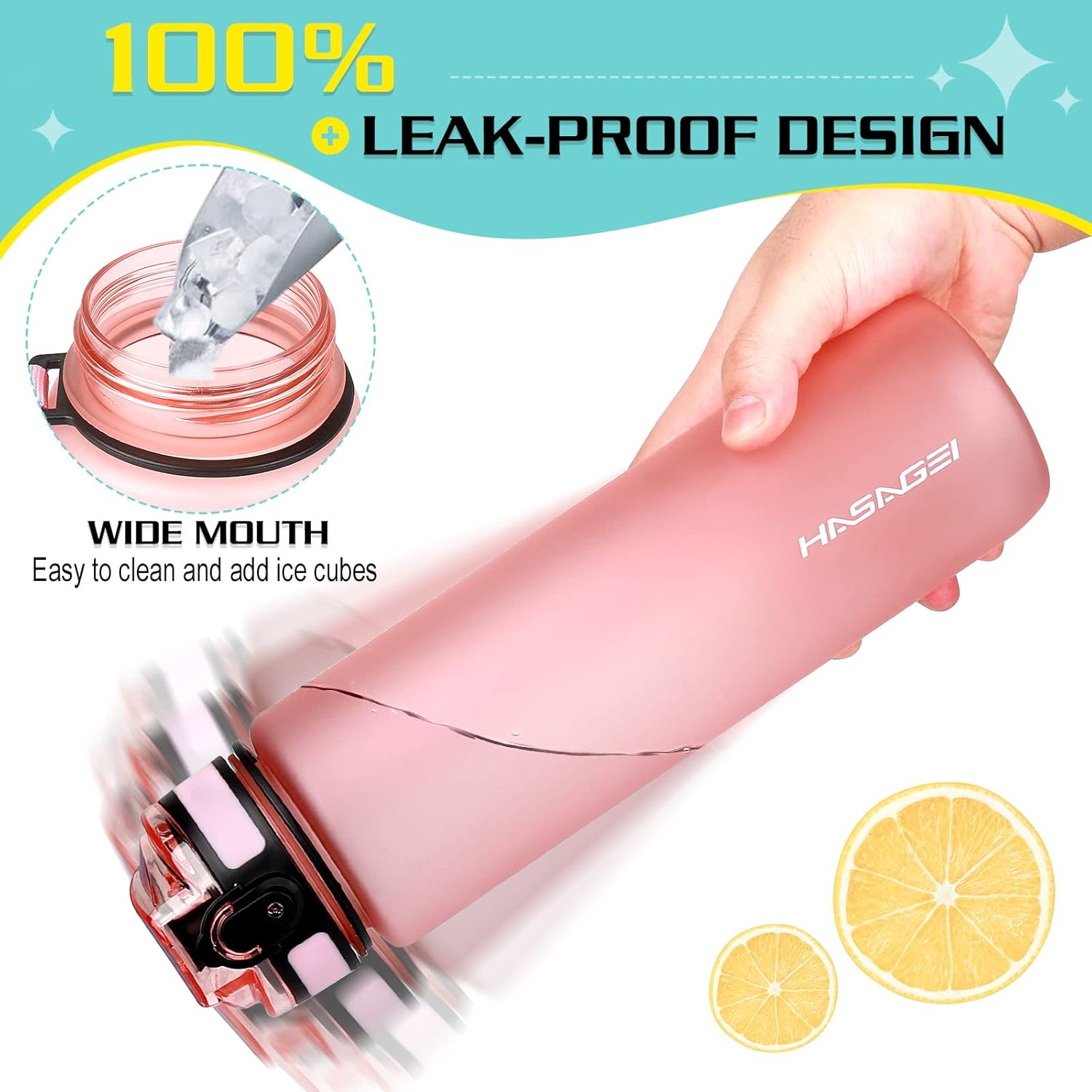HASAGEI Sports Trinkflasche 1L Wasserflasche BPA Frei Tritan Sportflasche mit Verschlussdeckel und auslaufsicher, für Fitnessstudio,Schule,Radfahren,Outdoor,Sport,Fitness und Büro