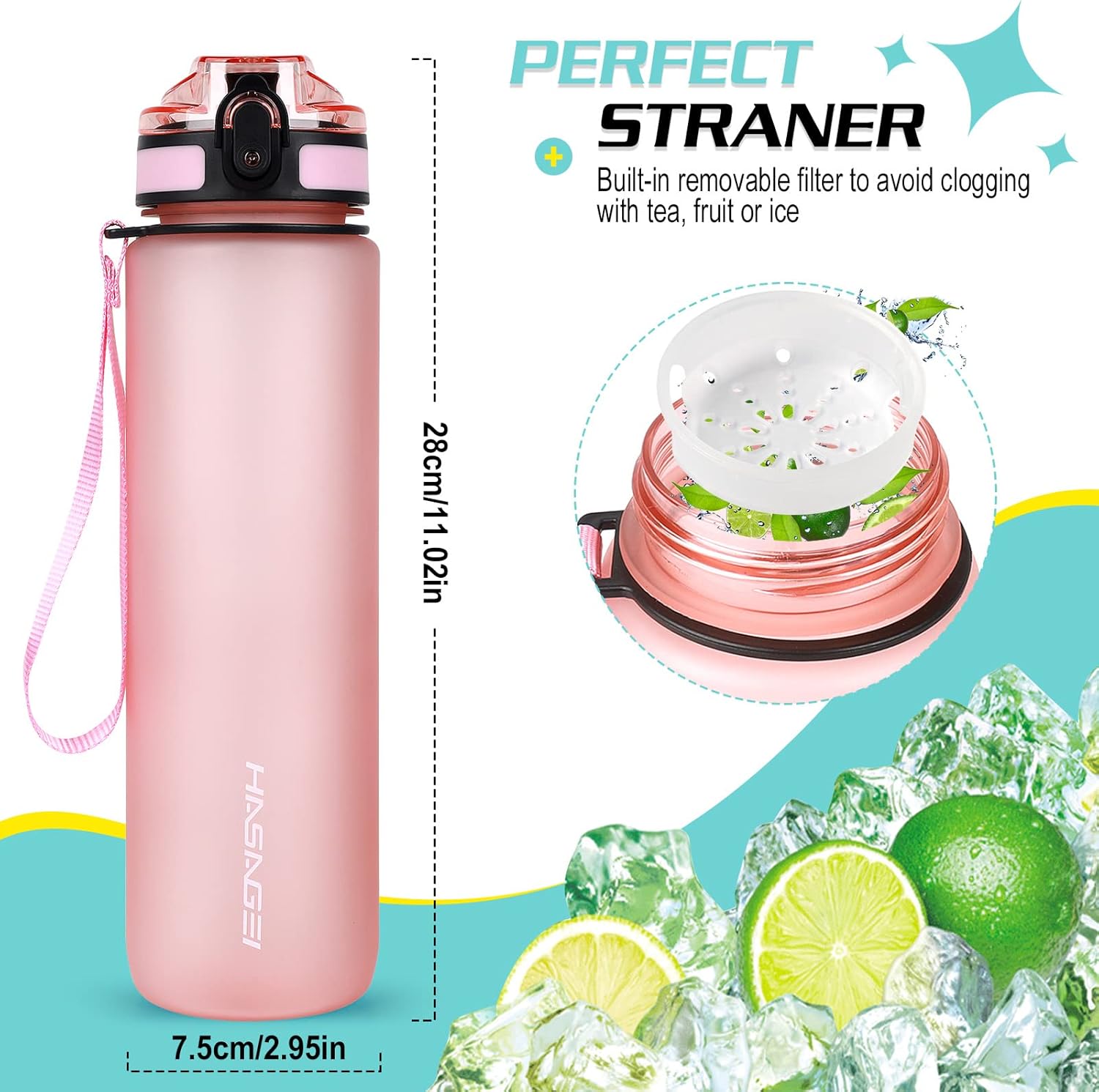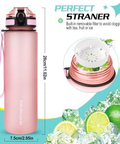 - 360° Leak-Proof Design : This drinks bottle is a 360° leak-proof design, when the cap is closed, the silicone dot pad seals the nozzle, and the safety lock prevents accidental opening of the cap. The water bottle has a built-in removable filter to avoid getting clogged with tea, fruit or ice when drinking. Comes with a free sponge brush for your convenience.