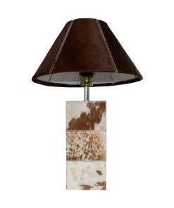 Exklusiver Lampenfuß mit braun & weißem Kuhfell – Quadratisch und Elegant