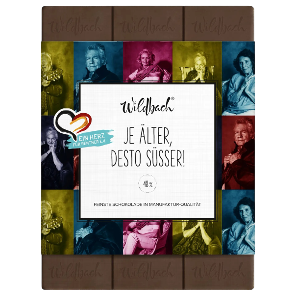 Mit jedem Kauf dieser Schokolade unterstützen Sie „Ein Herz für Rentner e.V.“ und tragen dazu bei, das Leben von Senioren zu verbessern. Genießen Sie eine köstliche Schokolade, die nicht nur Ihrem Gaumen Freude bereitet, sondern auch Gutes tut. Je älter, desto süßer – genießen Sie jeden Bissen!